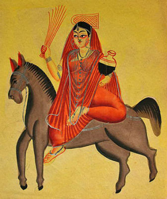 Shitala ( she who is cool ) Indian goddess of SMALLPOX and of other infections diseases. she is worshipped under this name throughout the regions of South Asia in which Indo Aryan languages are spoken. In India she is widely worshipped in the rural areas of west Bengal state. Her mythology is highly elaborated in west Bengal and Bangladesh, where Mangal Kavya ( auspicious poem) in Bengali, dating mainly from 18th and 19th centuries, describe the appearance of the goddess among mortals, their rejection of her, and the smallpox epidemics that she visited upon them. she is worshipped in Villagewide rites mainly in the dry weather of winter and spring, the season most Favourable to smallpox transmission.